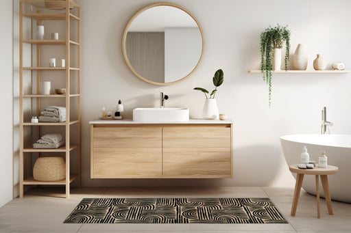 Wash+Dry MatsThe Brentwood Small Rugs and Runners feature swooping, bold, black lines and arches that bring a touch of organic elegance to any room. The warm ta...