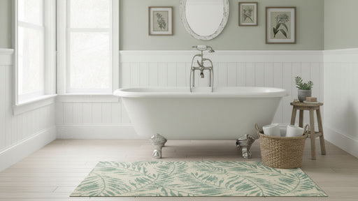 Wash+Dry MatsThe Palm Leaf Sage Small Rugs and Runners have a palm frond pattern that brings a tropical vibe to any space. The soft sage green palm leaves on a ...