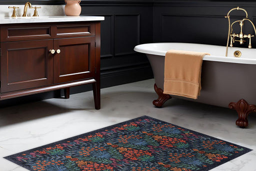 Wash+Dryâ„¢ MatsThe Lush Garden Dusk Small Rugs and Runners bring a rich, botanical elegance to any space with an intricate floral design set against a deep navy b...
