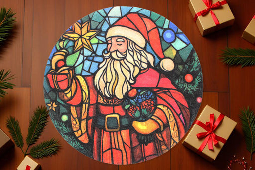 Wash+Dry MatsTis the season for the Stain Glass Santa Door Mat to bring the festive spirit home with this classic design. Featuring a vintage Saint Nick in a st...
