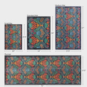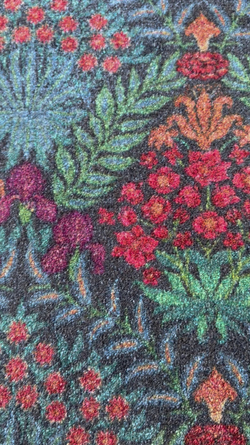 The Lush Garden Dusk Small Rugs and Runners bring a rich, botanical elegance to any space with an intricate floral design set against a deep navy backdrop. Vibrant shades of coral, teal, and golden ochre create a striking contrast, evoking the beauty of a lush evening garden in full bloom. The symmetrical pattern adds depth and sophistication, making it a perfect choice for cottage, eclectic, and traditional interiors.