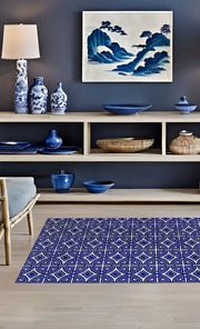 Make a statement with the Cobalt Small Rugs and Runners, featuring a striking chinoiserie-inspired pattern reimagined with a modern, graphic edge. The bold contrast of cobalt blue and crisp white in an eye-catching design turns your floor into a focal point, adding instant drama and energy to any space. This design offers timeless tradition with a fresh, contemporary twist.