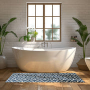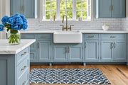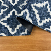 The Maltese Navy Small Rugs and Runners have a bohemian vibe with a geometric pattern of distressed navy blue and white stars and diamonds. This unique design adds an eclectic, artistic touch, blending modern style with rustic charm. It's the perfect statement piece to enhance any space with a sophisticated, textured look.