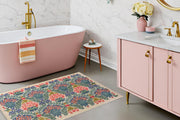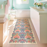 The Lush Garden Sunrise Small Rugs and Runners bring a bright, uplifting feel with an intricate floral design in vibrant coral, deep blue, and lush green on a warm, neutral background. The lively botanical pattern adds a fresh, cheerful touch, making it an ideal choice for cottage, farmhouse, and eclectic interiors. With its harmonious blend of colors and detailed composition, this mat enhances any space while offering everyday practicality.