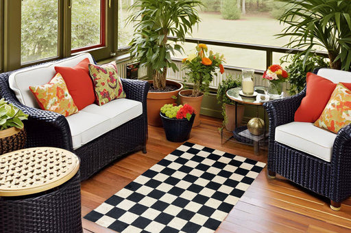 The Checkered Black Small Rugs and Runners combine classic black and cream in a striking checkered design, instantly elevating any room with its ti...