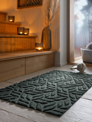 The DUNE Leaves Indoor/Outdoor Entry Mat combines durability with an eye-catching leaf pattern, making it a standout choice for your entryway. The organic leaf design adds stylish touch to any doorway while offering top-tier functionality. Featuring a rough, 3-dimensional structure, this mat effectively scrapes dirt, mud, and moisture from shoes and paws while deep drain channels allow water to flow freely, keeping your floors clean and dry.