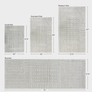 Stitches Small Rugs and Runners feature a soft gray base accented with an alabaster white stitch pattern, creating a subtle yet stylish design that complements any decor. The neutral tones and understated charm are perfect for adding a touch of soft sophistication to your space.