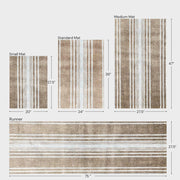 Simple and stylish the Linen Stripe Small Rugs and Runners feature crisp white stripes on a tan background. The neutral design is versatile for a variety of styles including modern, industrial, farmhouse, and cottage.