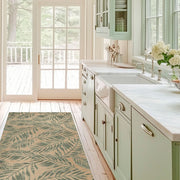 The Palm Leaf Sage Small Rugs and Runners have a palm frond pattern that brings a tropical vibe to any space. The soft sage green palm leaves on a tan background create a beautiful, natural look that’s reminiscent of grand garden estates.