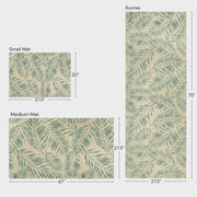 The Palm Leaf Sage Small Rugs and Runners have a palm frond pattern that brings a tropical vibe to any space. The soft sage green palm leaves on a cream background create a beautiful, natural look that’s reminiscent of grand garden estates.