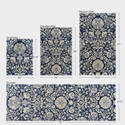 The Cornflower Blue Small Rugs and Runners bring vintage-inspired charm with the intricate floral pattern in navy blue and taupe. The classic design is a perfect fit for traditional, French country, and cottage interior design styles. The rich tone adds warmth, while the delicate pattern creates a timeless look.