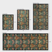 The Lush Garden Moonlight Small Rugs and Runners bring a botanical elegance to any space with an intricate floral design set against a faded black backdrop. Muted shades of red, sage green, and golden ochre create a striking contrast, evoking the beauty of a lush evening garden in full bloom. The symmetrical pattern adds depth and sophistication, making it a perfect choice for cottage, eclectic, and traditional interiors.