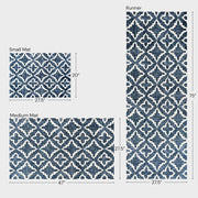 The Maltese Navy Small Rugs and Runners have a bohemian vibe with a geometric pattern of distressed navy blue and white stars and diamonds. This unique design adds an eclectic, artistic touch, blending modern style with rustic charm. It's the perfect statement piece to enhance any space with a sophisticated, textured look.